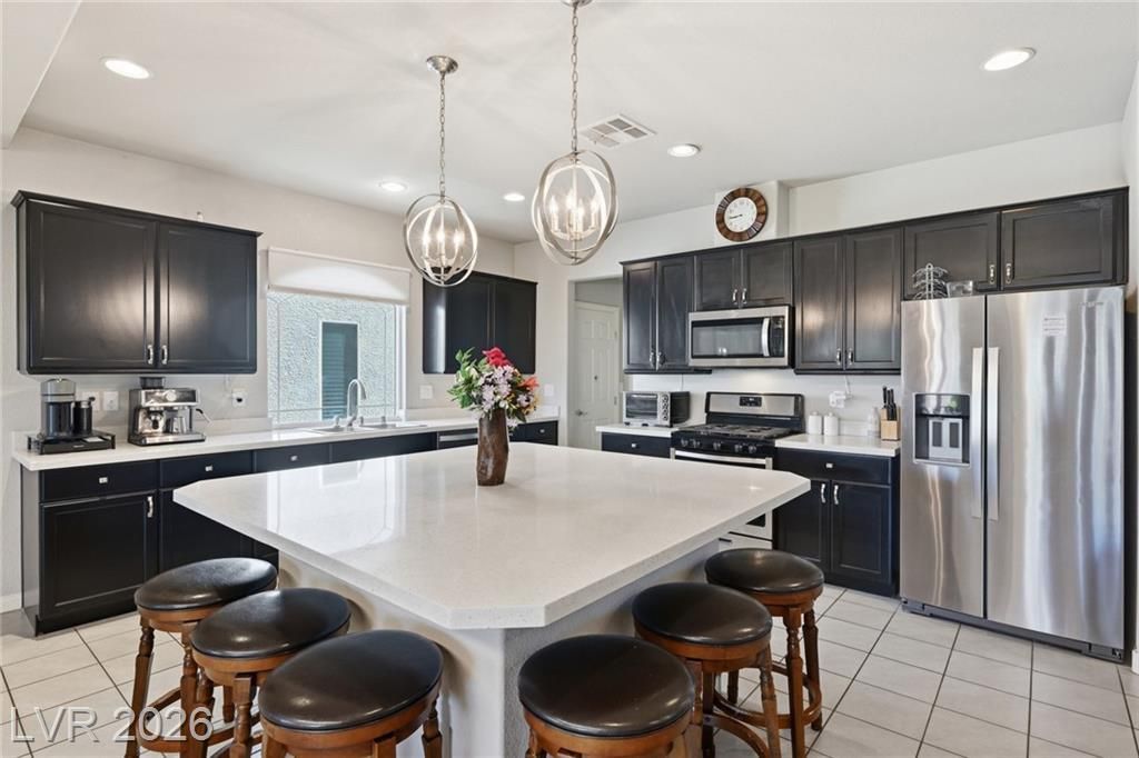 Thoughtfully designed, this home features 4 bedrooms and 2.5 baths, blending functionality with comfortable living. The open-concept main level provides a seamless flow between the living, dining, and kitchen areas?ideal everyday living and entertaining. The kitchen features ample cabinetry and generous prep space. Upstairs, well-sized bedrooms offer flexibility for a home office, guest accommodations, or additional living needs. The primary suite serves as a comfortable retreat with a practical and well-proportioned design. The backyard is enhanced with mature greenery and blooming flowers, creating a private and inviting outdoor setting. Lush landscaping adds natural color and texture, offering a peaceful space to relax or enjoy outdoor living. Conveniently located in Southwest Las Vegas with access to shopping, dining, parks and schools. The home is also equipped with solar, providing added energy efficiency and the benefit of lower utility costs.