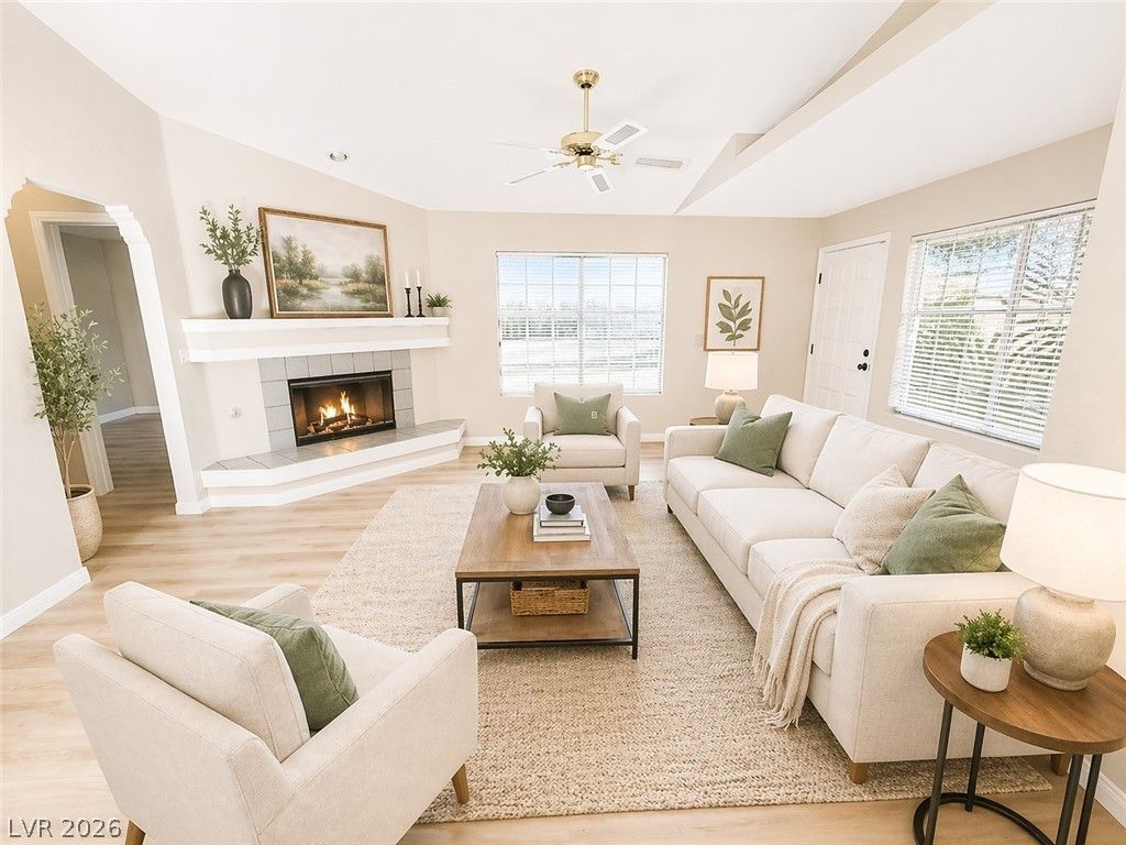 SUPER CUTE 2 BED 2 BATH CONDO , GAS FIREPLACE , VALTED CEILINGS, DECO DOORWAYS ALL NEW FRESH NATURAL PAINT WITH NEW VINYL PLANK WOOD LIKE FLOORING WHITE BASEBOARDS NEW 6 PANEL WHITE DOORS , NEW HANDELS , 2 LARGE BALCONIES 1 OFF THE PRIMARY BEDROOM AND 1 OFF THE LIVING AREA. PRIMARY BEDROOM HAS A WALK-IN CLOSET WITH A MIRROR WALL , NATURAL LIGHTING 2ND BEDROOM HAS A WALK-IN CLOSET FRESH PAINT, FLOORING AND BASEBOARDS. WASHER , DRYER , FRIDGE, MICROWAVE, CONDO IS LOCATED NEXT TO COMMUNITY POOL AND SPA, BBQ AREA VERY TROPICAL READY FOR YOU TO MOVE RIGHT IN