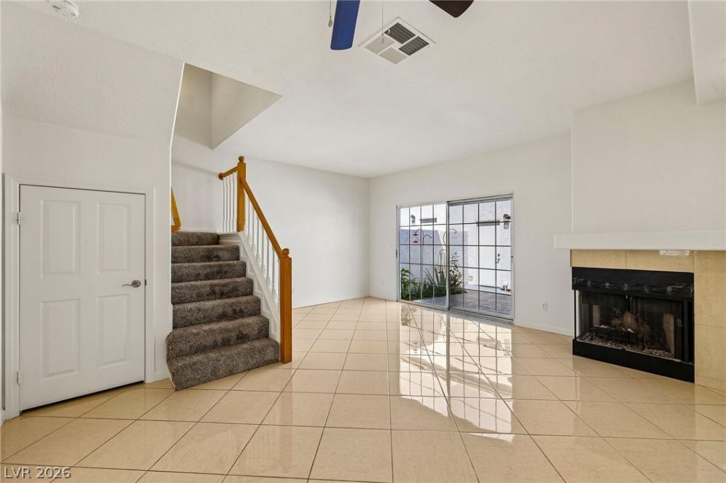 Cozy two story condo with a rare private patio, 2 car garage all in a prime Henderson location! This well-maintained home features 2 beds and 2.5 baths, including dual primary suites upstairs with walk-in closets and private baths with new shower heads. The kitchen offers custom overhead lighting, upgraded sink & faucet, refinished cabinetry, stainless steel appliances including stove from 2022, new vent & dishwasher, breakfast bar & upgraded solid surface countertops. Enjoy a gas fireplace, beautiful staircase chandelier, upgraded lighting, door fixtures & new interior paint. Carpet and baseboards replaced in 2023. Highlights include an Ecobee thermostat, security door, HVAC from 2021, new water heater from 2024 and primary suite w/ brand new blinds. Newer washer and dryer included. HOA covers water, trash, sewer & garage power. Community pool, spa, and clubhouse. Near shopping, dining, schools & freeways, just minutes from Sunset Station Hotel & Casino & Arroyo Grande Sports Complex