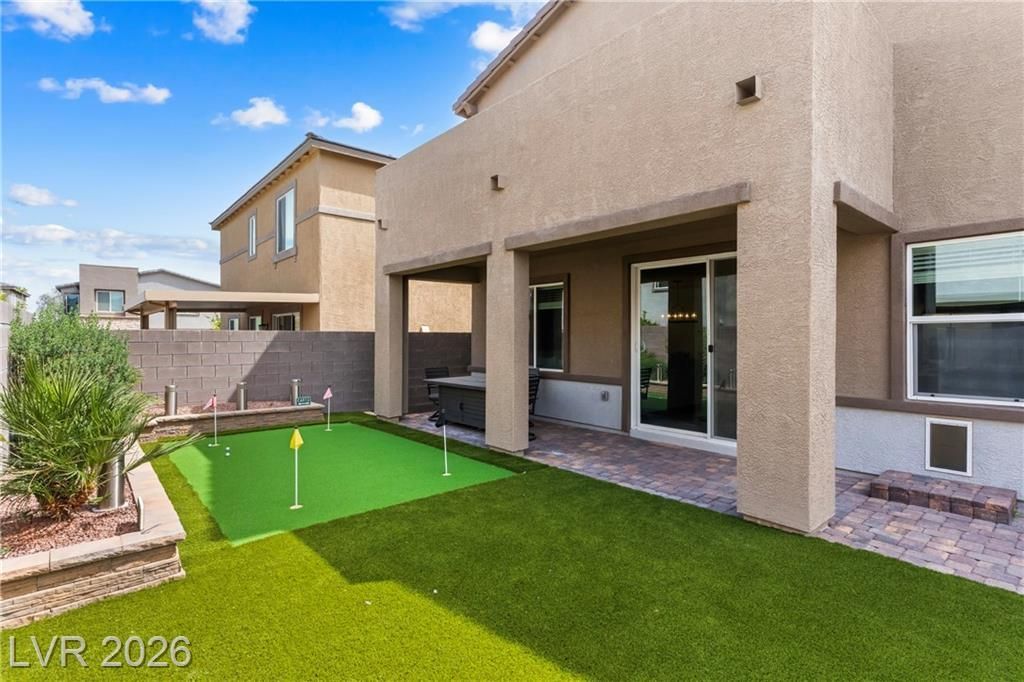 Stunning highly upgraded 3 bed/loft home in the beautiful gated community of Archer at Sunstone! This contemporary floor plan features a large 2 car garage with custom built-in cabinets, overhead storage racks, soft water system, custom paint, and epoxy flooring. The beautiful interior features include LVP flooring throughout the first floor, two oversized sliders w/electronic zebra shades, custom can lighting throughout, pendant lighting, ceiling fans, oversized island, HUGE pantry, 42 java cabinets with pulls, new door hardware, custom barn door at primary bath and more! The backyard is truly an oasis, featuring a beautiful spa, surrounded by mature landscaping, turf, putting green, built-in patio cover w/oversized balcony, and privacy gate! Minutes from shopping, fine dining and beautiful Mt. Charleston!